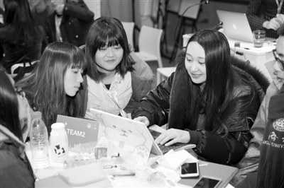 第二期同济大学—紫荆谷创新创业研习营在同济大学启动。本届研习营吸引来自海峡两岸及香港澳门高校的70余名学子参加。图为1月6日,在上海同济大学,参加研习营的学生在工作坊活动中讨论小组项目。
