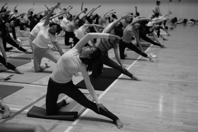 6月21日,瑜伽爱好者在云南民族大学雨花校区芷苑体育馆参加名校名师国际瑜伽高级研修班。