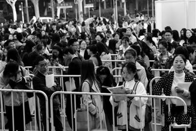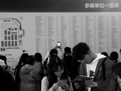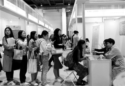 10月28日,应聘者在招聘会上与用人单位代表交流。 当日,2018冬季长三角师资招聘专场在上海光大会展中心举行。来自长三角地区20多个城市的近千家用人单位提供了约12000个教师岗位。新华社记者 刘颖 摄