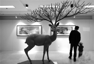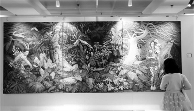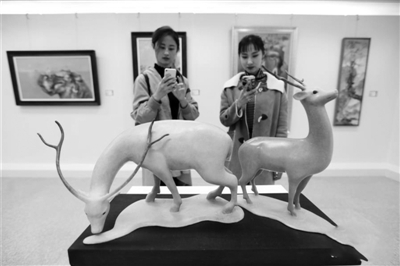 10月28日,为期15天的2018全国大学生艺术年度大展在山东省青岛市即墨区德馨艺术中心开幕,来自全国44所院校的420余件作品亮相,涵盖国画、油画、版画、雕塑等门类。 新华社发 梁孝鹏 摄