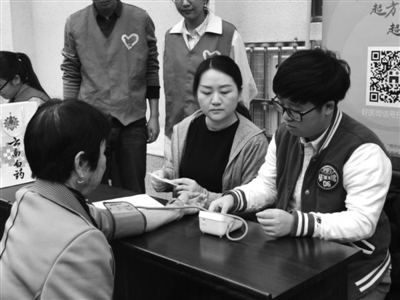 日前,由武汉晚报公益文化传播院携手阿里巴巴天天正能量、武汉开发区工委(汉南区委)组织部、武汉市青少年发展基金会、武汉市慈善总会、好医网、汉网联合发起的“益张照片·最美夕阳”公益活动来到汉南区朱家山社区,为这一带的50位老人留下温暖回忆。图为好医网志愿者现场为老人量血压。