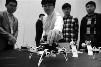 11月18日,仿生教育机器人参赛项目代表在进行产品展示。当日,“常青梦空间”第四届安徽创客大赛总决赛在合肥举办,来自安徽各地的50多个创业项目进行角逐。