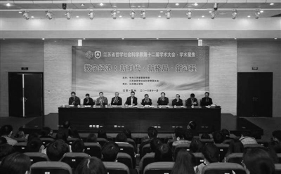 11月30日下午,江苏省哲学社会科学界第十二届学术大会“数字经济:新时代·新格局·新征程”学术聚焦活动在江苏理工学院举行。全省经济学领域的专家学者、各路精英齐聚该校,分享研究成果,共同探讨数字经济的变革和机遇。江苏省哲学社会科学界联合会党组书记、常务副主席刘德海,常州市委常委、宣传部长陈涛,江苏省哲学社会科学界联合会党组成员、副主席徐之顺,常州市哲学社会科学界联合会党组书记、主席朱明辉,江苏省发改委原主任、南京大学教授钱志新,浙江大学教授史晋川,南京邮电大学教授李云,中国企业联合会企业研究处处长刘兴国,江苏理工学院党委书记王建华,党委副书记、副校长崔景贵,以及社会科学处人员、部分教师、学生参加交流互动。