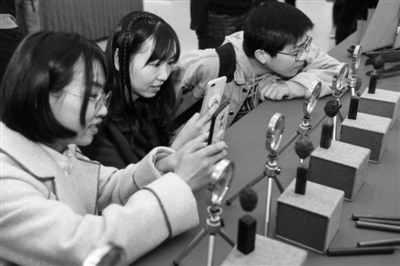11月30日,大学生近距离欣赏非遗技艺庐州核雕。 当日,一场非物质文化遗产集中展示活动在位于安徽合肥的中国科学技术大学举行,观众现场体验界首彩陶、吴山铁字、徽州木雕等非遗技艺,感受传统文化魅力。