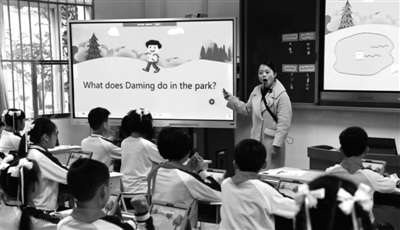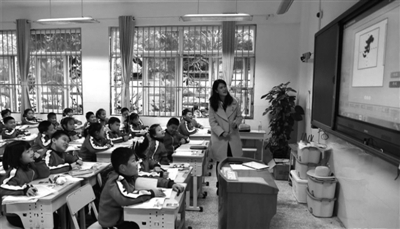 12月27日,南宁市玉兰路小学的学生在录播教室利用录播功能回看一名同学“柔”字书写过程。当日,广西170多名中小学教育工作者前往南宁市玉兰路小学,参观该校智慧教育示范学校现代化信息系统。该系统由录播教室、创客教室、智慧教室、数字书法教室、智能阅读机等构成,将实体展示和网络动画展示相结合,大大增强了课堂教学的互动性和趣味性。新华社记者 周华 摄