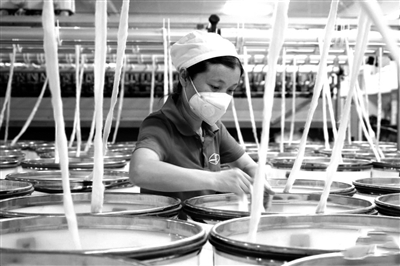 9月18日,在四川省仁寿县文林工业园区一棉纺厂,返乡妇女们在工作车间内作业。