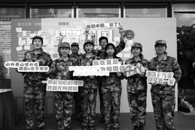 “用爱丈量祖国河山”“龙腾五千载,狮醒七十年”“遍历四方星辰,心系九州大地”……近日,复旦大学校园里彩旗招展,各大学生社团结合自身特色表白祖国的条幅不时引来师生驻足。