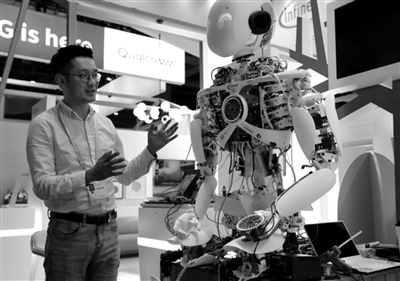 第二届中国国际进口博览会11月5日至10日在国家会展中心(上海)举行。科技生活展区的德国英飞凌公司的机器人Roboy已完成调试,在展会上和观众进行多项有趣互动。