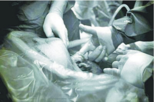 据美国媒体、英国《每日邮报》1月4日报道,美国亚里桑那州格兰代尔市孕妇艾莉西娅·阿特金斯最近在医院中接受剖腹产手术时,医生还没来得及从艾莉西娅腹中抱出她的新生女儿内瓦伊赫,没想到内瓦伊赫竟迫不及待地从母亲子宫中伸出小手,紧紧抓住了医生的手指,试图在对医生说:“赶快拉我出来!”内瓦伊赫的父亲赶紧取过照相机,拍下了新生婴儿从母亲子宫中伸手抓住医生手指的罕见画面,当这张照片被阿特金斯夫妇传上著名的社交网站“脸谱”后,如今已经成了2013年最热门的网络照片之一。