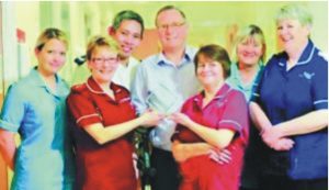 | 特里·怀特(中)和医护人员亲如一家 |