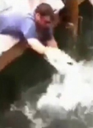 据悉,这条大鱼是一条大海鲢。大海鲢十分强壮,且长有一张大嘴。美国佛罗里达州已报出多起大海鲢袭击人类的事件。中新网 2013.1.15