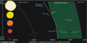目前,公认的太阳系中的宜居带始于约0.95个天文单位(约9300万英里),这个距离较为舒适,距离地球运转轨道为1个天文单位。然而,由詹姆斯·卡斯丁(James Kasting),美国宾夕法尼亚州立大学的研究人员,美国宇航局以及波尔多大学的最新研究表明,该宜居区的内部边缘已远远超出范围,为0.99个天文单位。