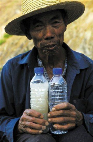 在云南省昆明市东川区,流淌着这样一条河,沿岸的村民称其为“牛奶河”。当地工矿业排放的尾矿水,直接注入了这条河流中,污染已经持续了很多年。近两年,持续的干旱让雨水变得稀少,小河里的白色河水变成了岸边居民饮用水的无奈选择。 《新京报》2013.4.1 摄影报道/郭铁流