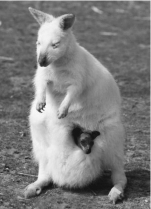 白化病小袋鼠艾米丽产下一只棕色幼崽。而另一只名叫莫妮卡的棕色袋鼠产下一只有白化病的幼崽。两只可爱的小袋鼠幼崽在同一家动物园出生,看上去却像是在出生时被掉了包。但实际上这是小袋鼠生下颜色相反幼崽的罕见遗传现象。