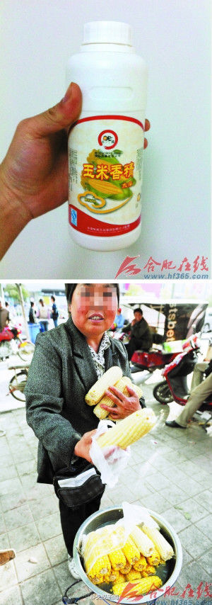 据《合肥晚报》报道,记者向化工商店老板讨教街头玉米如何保持原味,老板称,“用玉米香精,不管在锅内煮多久,玉米都会保持明黄色,口感非常甜,合肥街头上所有卖甜玉米的都从我这进货。”据了解,这种香精属于添加剂,用量有强制性标准,长期食用,会对肝脏造成损害。央视网 2013.5.6