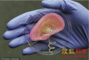 研究人员使用技术精湛的3D打印机制造了仿生耳,其中内置电子助听器。他们指出,这是研制类似电影《终结者》中智能机器人的一个重大突破,或许不久终结者机器人将面世。之前的仿生耳设计采用2D电子结构薄层制造,目前,普林斯顿大学机械航空工程副教授迈克尔·麦克阿尔宾说:“我们建造的最新仿生耳设计,是将电子生物与3D交织体协同结合在一起。”