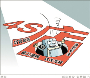 某国产品牌的汽配店店主罗老板告诉记者,4S店最常见的以次充好部件是保险杠、水箱、水箱支架以及一些装潢装饰件、塑料件,使用这些配件风险小、利润高。例如前后保险杠,即使装上副厂件一喷漆,车主也发现不了。有些汽配店甚至60%――70%的业务量都来源于4S店。“越是小汽车品牌,这方面管理最松;越是到市县一级,地下交易越普遍。”