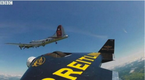 据外媒报道,当地时间7月29日,瑞士著名探险家“喷气人”(jetman)穿着他特别订制的喷气机服,和B-17战斗机一起在美国威斯康辛州上空“比翼双飞”。
