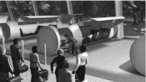 马斯克的想法来源于气动导管,就是那种发射装有文件的囊型容器,在办公楼各楼层之间传递文件。在马斯克提出的设想中,这个囊变成了车舱,用于搭载人员甚至于汽车,在低压管道内快速穿行。这种设计能够将湍流降至最低同时让速度最大化。