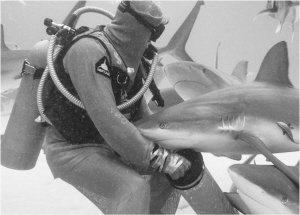 据英国《每日邮报》 8月13日报道,一位名叫汤姆(Tom)的潜水员在巴哈马群岛海域潜入45英尺(约13.7米)的海底,并且遇到了15头加勒比礁鲨。他选择了其中的一条,温柔地抚摸其鼻头将其“催眠”,然后成功地只用手掌就将鲨鱼的身体摆放平衡。