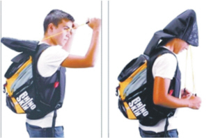 一位以色列设计师最新研制一种“防弹背包”,可作为一种基本的个人避难装置,尤其适用于恐怖袭击事件。一旦听到空袭警报,人们只需拉一下侧面的黄色绳子,头罩能够覆盖头部,身体平躺在地面上。这个背包的售价467美元,能够完全保护头部、心脏、肝脏和肾脏免遭碰撞或者爆炸碎屑,背包内部有19层凯夫拉防弹层,重量仅2.26公斤。