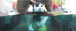 近日,美国田纳西州一只小猫因超重被送往动物康复中心减肥,并在水下跑步机的帮助下成功甩掉5磅(约2.3千克)肥肉。据悉,这只名叫小佛的小猫由于经常被主人喂食意大利面、米饭等,体重曾一度达到31.4磅(约14.2千克)。小佛在主人去世后即被送到动物康复中心减肥。在那里它受到饮食节制,并且每天在水下跑步机上锻炼21分钟。目前小佛正在朝20磅(约合9千克)的标准体重奋斗着。当它减肥成功后,动物康复中心便会为它寻找一名新的收养者。