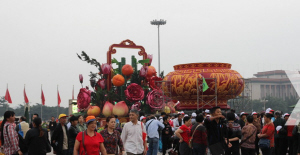 9月22日,北京天安门广场上的巨型花篮初具规模。据了解,2013年国庆花篮高达18.2米,篮盘直径达到15米,中心花坛直径达到50米,是天安门广场历年最大的花篮。新华网
