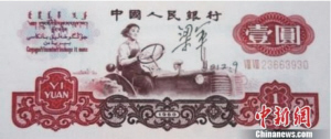 近日,多家媒体刊登了《新中国首位女拖拉机手病危》的消息,文中提及有说法称女拖拉机手梁军系第三套人民币面值壹圆的人物原型。对此,第三套人民币设计者侯一民先生说:“我画的女拖拉机手是根据自己的想象画的,没有以任何人为原型。”