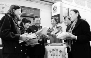 11月7日,中原油田第八社区工会人员将流动书箱送到物业四区保安队。开展群众路线教育实践活动以来,第八社区工会加大对“职工书屋”和基层班组的建设,开展“传递知识 共享快乐”职工捐书活动,将职工捐增的2000余本书籍,全部充实到基层“职工书屋”和基层班组,丰富职工精神生活。