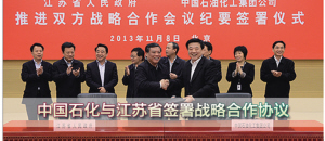 本报讯 11月8日,中石化集团公司与江苏省人民政府关于推进双方战略合作会议纪要签字仪式在北京举行。江苏省委常委、常务副省长李云峰,中石化股份公司总裁李春光出席签字仪式。李云峰和李春光分别代表双方签署会谈纪要。