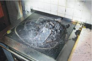 房主说,这个小机器人用来帮助打扫全家人早餐遗落的残渣,完成工作后,就将机器人的开关关闭。之后一家人离开了房子。但不知为何,这个机器人自己启动了,还爬到了炉子上,推开了放在炉子上的锅,把自己活活烧死。等主人回到家里,机器人早已是炉子上的一堆灰烬。