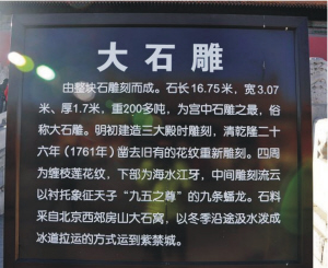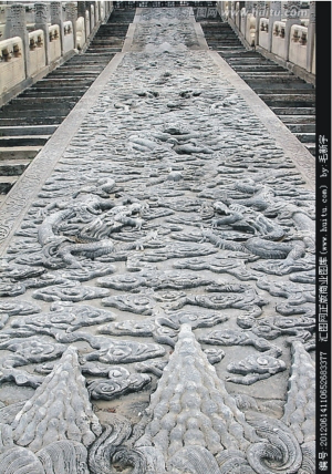 北京故宫使用的巨石据说多达数万块,其中最大一块是摆放在保和殿后面的、上面雕九条游龙的重约200吨的大石雕。明代的文献记载表明,车辆和旱船在建造紫禁城运输大石过程中都曾被使用过。不过直到16世纪末的车辆只能运输最重约95吨的东西,所以百吨以上的巨石可能需要通过其他方式运输。