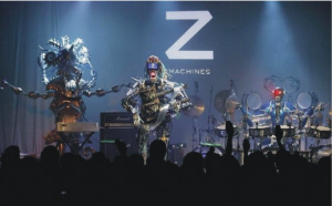 据国外媒体报道,日本东京大学工程师们研制了一个摇滚机器人组合,并成立了一个称为“Z-MACHINES”的机器人摇滚乐队,成员有三名机器人,分别是吉他机器人“马赫”(Mach)、鼓手机器人“阿舒拉”(Ashura)和键盘机器人“科斯莫”( Cosmo )。它们都身怀绝技,机器人“马赫”拥有78根手指、鼓手机器人“阿舒拉”拥有6只胳膊、键盘机器人“科斯莫”的眼睛可让现场获得动感光线效果。