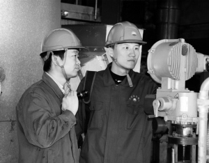 图为这个分厂员工正在检查设备看有无缺陷。(厉成静)