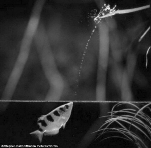 射水鱼能够以令人难以置信的速度和精确度捕获昆虫,它仅用0.1秒时间喷湿猎物,当猎物落入水中时迅速吞入口中。