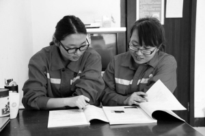 李禾和赵立媛2012年分配到冀东油田井下作业公司后勤服务大队,开始与电打上了交道。别看她俩年纪小,又都是女孩,但干起活来,登高爬下、拉线接灯,一点不输给男同胞,难怪有人称她俩是电工姐妹“霸王花”。