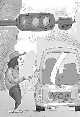 每次红灯,王老汉都会走到路口排队的车流里,挨个在车前作揖。有人给钱了,王老汉会朝司机点头表示感谢。