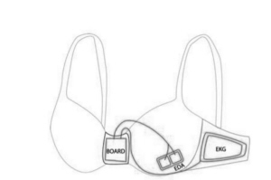 该款内置传感器的文胸可有效监测穿戴者的情绪。其原理是收集穿戴者的心电图(EKG)和表示肌肤出汗量的皮肤电位图(EDA)的数据。EKG传感器设计于与肋骨完美吻合的衬垫处,测量汗量的EDA传感器则安装于胸垫内侧。通过“EmoTree”应用软件,研究人员将4名女性参加人员的数据进行对比。结果显示,“智能文胸”在测定清醒状态(心情明朗或无聊)及情绪状态(情绪积极或消极)方面的准确率达73%-75%。