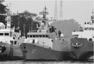 056型护卫舰被西方归为小型护卫舰,主要用于领海及专属经济区的巡逻。056型护卫舰拥有多种防御性武器,还拥有强大的反舰和反潜能力。其装备有76毫米口径主炮以及两座类似于美国“密集阵”的30毫米口径近防武器系统。此外,056舰还配备一套FL-3000N飞豹导弹防御系统,类似于美国的旋转体导弹(RIM-116)防御系统,每个发射装置可装载8枚飞豹导弹。