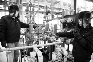 图为这个厂聚丙烯装置员工正在调整工艺流程。