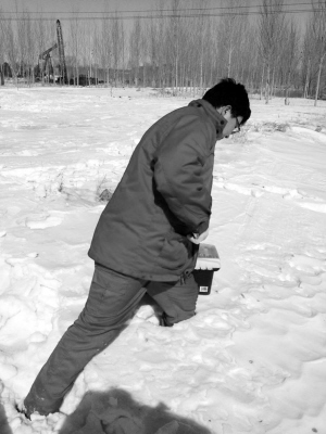 图为这个大队突击队员在雪深过膝的天气进行单井抢修。 (徐雨薇)