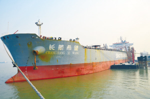 图为“长航希望”号油轮驶离金陵石化10号码头(窦 豆 李 剑)