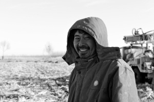 Wt100钻机的轰鸣声在茫茫荒原上格外响亮,钻井工的身上早已全是淤泥,夹杂着冬日清晨的白霜,把一身火红的工装染成了灰色。程队长站在司钻的位置,头望着转动的钻杆,在操作台上紧张的忙碌着。旁边的吴海洋告诉我们,驻地两台钻机坏了,这辆车的跟班司钻被程队长派回去修车,他自己则顶了这个司钻的位置,亲自打井。
