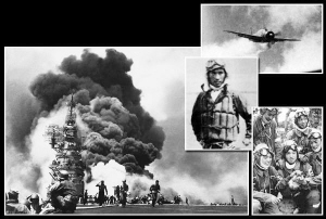 | 1945年5月11日,美军航母“班克山”号被神风飞机击中。 |