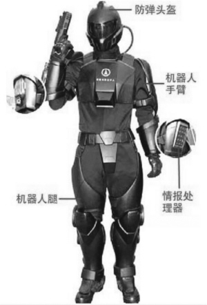 三、机器人手臂与机器腿:未来的战士们将不再用自己的腿脚走路,只需操作机器腿就能自动走动。由于未来的战斗服全身装置有各种感应器、通信器与信息处理器(电脑)等,即使使用新材料,也会非常沉重,沉重的装备必然会制约士兵们的行动,增加体力消耗。为克服这一点,未来战士将装配在美国与英国等地已经进入实用化阶段的机器人手臂和机器腿,士兵的腿脚可以自动活动,相当于使人变成了半个机器人。机器人手臂将自带枪支和与智能手机相仿的系统,可以同时进行攻击与通信。
