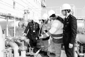 2月11日,从天津港有关部门获悉,2013年11月,位于天津港南疆的浮式LNG码头迎来首艘靠泊船舶,正式投用,这也是全国首个浮式LNG项目。新项目落户给天津广大市民带来了绿色清洁能源。然而,由于LNG具有较大的火灾爆炸隐患,也带来了巨大的监管压力。在该项目投用后的近日,天津南疆海事局执法人员登上靠泊LNG码头的“安海角”轮,和他的同事一起,进行船舶及码头现场安全监管,保障FSRU天然气正常、安全输送。