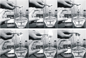 “耐火纸”在酒精灯的火苗上滞留近30秒没有发生自燃;而普通纸张顷刻间被酒精灯点燃,从完好状态到化为灰烬仅用时6秒左右。