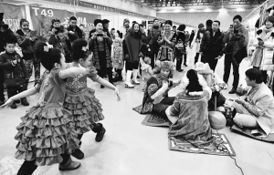 图为哈萨克民族舞蹈吸引众多市民观看。 (王远来)