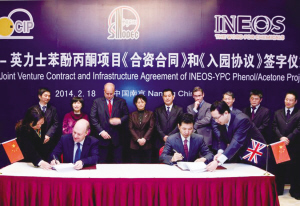 扬子石化与英力士联合投资31.5亿元、建设目前国内最大65万吨/年苯酚丙酮项目合资合同,于2014年2月18日在南京签字;同时签字的还有苯酚丙酮技术转让协议、项目入园协议。标志着这一项目已经跨过新的快速推进里程碑。
