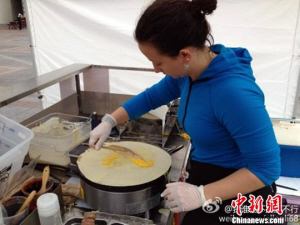 日前,一则“西雅图遇上煎饼果子”的消息“火”遍微博。据了解,这是一位在浙江省湖州市安吉教过一年半英语的美国女孩,在吃遍中国各式“煎饼果子”之后,经过琢磨钻研,在西雅图支起一个“中国煎饼果子摊”。该微博被转发8000余次,引来大批网友围观。